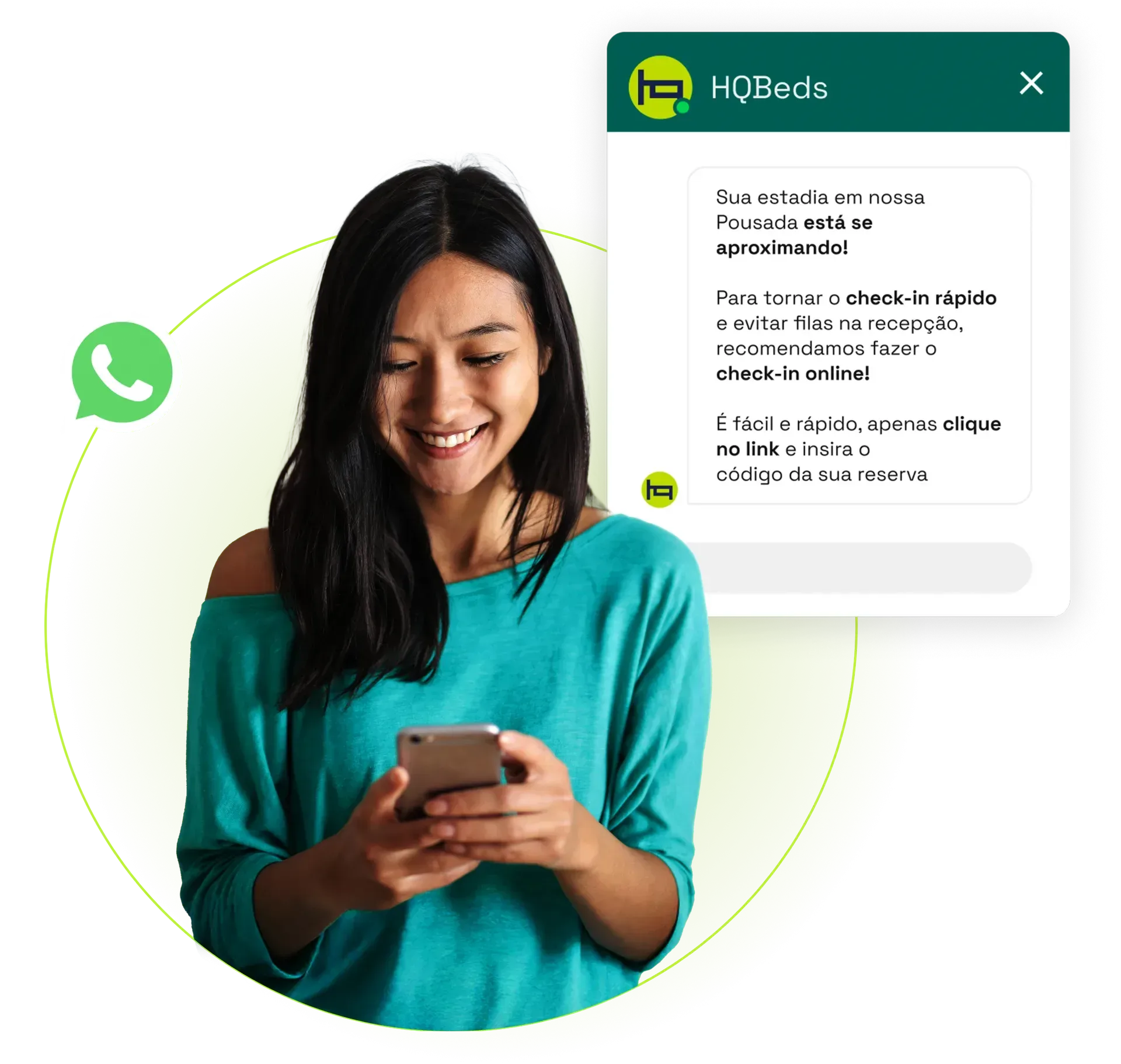 O HQZap se integra ao sistema de gestão HQBeds e envia automaticamente mensagens personalizadas para os hóspedes durante toda a sua jornada, incluindo confirmação de reservas, check-in, check-out e outros detalhes relevantes.