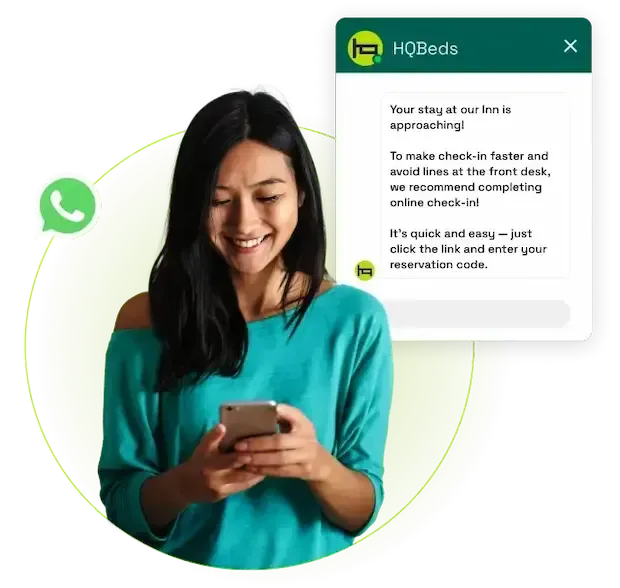 HQZap integrates with the HQBeds management system and automatically sends personalized messages to guests throughout their stay, including booking confirmations, check-in, check-out, and other relevant details.